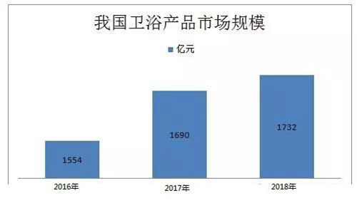 據中國報告大廳數據顯示,我國衛浴產品市場規模從2013年的850億元快速增至2014年的1080億元,2017年我國衛浴產品市場規模達到了1690億元,2018年我國衛浴產品市場規模為1732億元,我國是全球最大的衛浴市場之一。