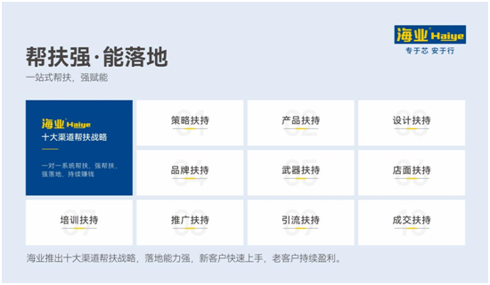 傳統門店對客戶的消費動機和行為缺乏準確的認知,經營思維沒有跟上時代的變化,難以讓客戶有更好的消費體驗。海業建立起一整套系統高效的運營管理體系,為加盟商提供全生命周期的服務,帶來更多維度的清晰部署和增長賦能。從開業幫扶,到落地服務、培訓指導,海業全方位深入終端開展幫扶行動,以因地制宜的產品推廣、持續性的線上營銷傳播,不斷增強品牌附加值,為全國各地加盟商門店強勢引流拓客。