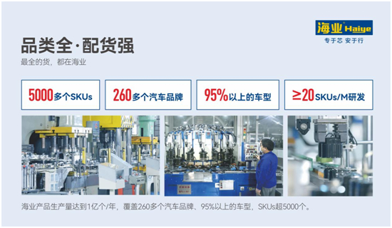加盟品牌的優勢之一,就是配件渠道可靠、穩定。海業擁有4萬多平方米的現代化生產基地,是汽車濾清器行業首家擁有生產、裝配、測試、包裝全自動一體化生產線的企業。海業嚴格按照國際質量管理體系進行生產管理,確保產品品質,產品線囊括機油濾清器、燃油濾清器、空氣濾清器及空調濾清器等多個系列。強大的生產硬實力為產品提供質量保障,經銷商在加盟后能夠直接獲取各類原廠件與品牌件,門店經營將沒有后顧之憂。