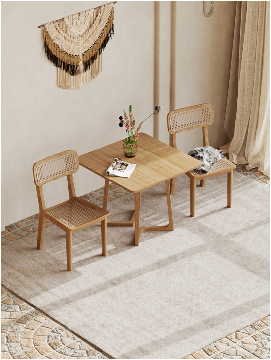 炎熱的夏天總有理由讓人食欲不振,而正確的打開方式是通過空間布置制造夏日清涼氣息,同時增添了一份生活氣息。洛品有家一套木質餐桌椅,線條柔和,能讓人快速融入安逸舒適的環(huán)境中,不會占用餐廳太多的面積,使空間看起來局促。