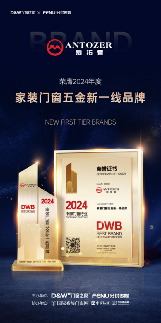 此次榮膺“中國家裝門窗五金新一線品牌”,全面彰顯了業內對愛拓者的高度認可。未來,愛拓者將繼續以市場需求為核心,持續為客戶創造價值,以創新驅動發展,以品質贏得市場,以服務贏得口碑,提供優質的門窗五金整體解決方案。愛拓者期待與更多門窗合作伙伴并肩攜手,共同“向新而生”,賦能門窗行業提質增效。