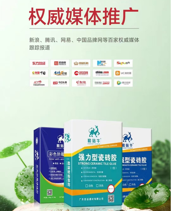 面對白熱化的市場競爭,打造強有力的品牌是突出重圍、化險為機的關鍵。作為瓷磚膠領域的卓越品牌——瞻貼牛,在保證高效率生產及正常運營工作的基礎上,如火如荼地啟動了品牌營銷推廣戰略,攜手國內知名品牌營銷公司,與各大主流媒體達成合作,做好卓越的宣傳,促進品牌造勢,形成爆炸級的口碑效應。