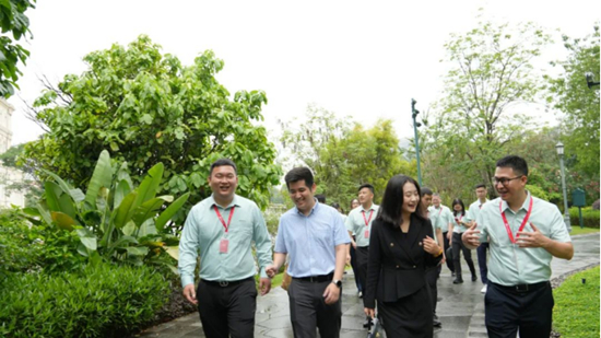 午后,雙方乘坐觀光車穿梭于溪村園區,華為云解決方案專家郭梓堅結合園區智慧管理系統,闡釋了數據驅動決策的價值邏輯。住向智能物聯總監李連鋒提出:“門窗作為建筑功能與美學的交匯點,未來可通過數據中臺實現性能可視化,這正是雙方合作的技術想象空間。”