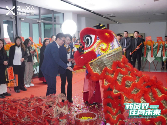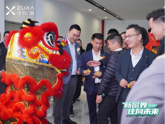剪彩儀式后,醒獅點(diǎn)睛環(huán)節(jié)將現(xiàn)場氣氛推向高潮。廖敏女士和楊硯涵女士手持金筆,為祥獅點(diǎn)睛,寓意著住向門窗在新的一年里生意興隆,財源廣進(jìn)。醒獅舞動,鑼鼓喧天,現(xiàn)場觀眾無不為之振奮,共同感受傳統(tǒng)文化與現(xiàn)代科技的完美結(jié)合。醒獅的威武與門窗的精致相得益彰,展現(xiàn)出住向門窗在傳承與創(chuàng)新中的獨(dú)特魅力,也象征著品牌將在新的一年里如醒獅般活力四射,勇往直前。