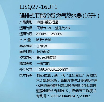 16L的燃氣熱水器小編這里推薦兩款,一款是熱水器品牌萬家樂的LJSQ27-16UF1,這款的好處是一級能效,是冷凝式產(chǎn)品,不過不帶浴缸模式,價格4199元,還算合理,并且能耗低,不過唯一的小遺憾是沒有浴缸模式,我們放水的時候略有不便,不過這款總體來說還是非常不錯的,建議大家首選。