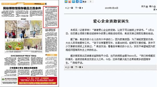 3月24日庫爾勒晚報報道《愛心企業(yè)資助貧困生》