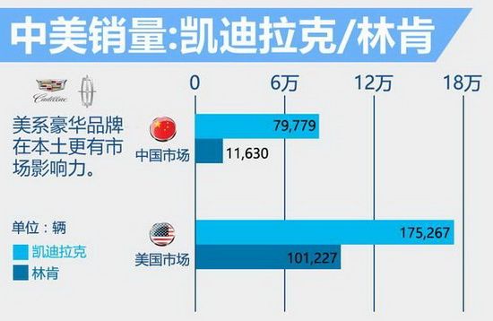 中國市場上美系豪華品牌凱迪拉克、林肯均在2015年實現(xiàn)業(yè)績新高,其中凱迪拉克品牌同比增長17.0%至79,779輛,相比美國市場175,267輛的成績?nèi)杂幸欢ú罹唷S?014年入華的林肯品牌,在2015年銷量已破萬輛,達(dá)到11,630輛,增長勢頭十分顯著。