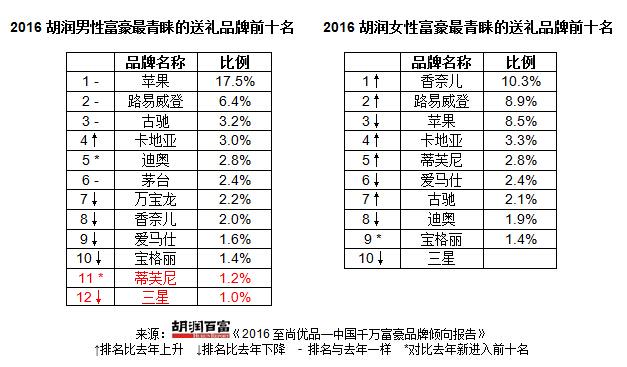 “最青睞的男士送禮品牌”中,蘋果繼續穩居第一名。分列二三位的路易威登和古馳,排名和去年一樣,穩居三甲行列。今年上升較快的是卡地亞、迪奧和蒂芙尼。愛馬仕則繼續“下跌”,從去年的第六位下滑至第九位。