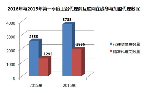 2016年、2015年第一季度衛浴代理上互聯網在線參與加盟代理數據