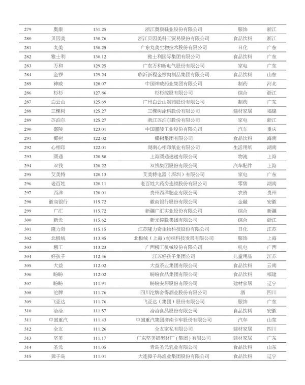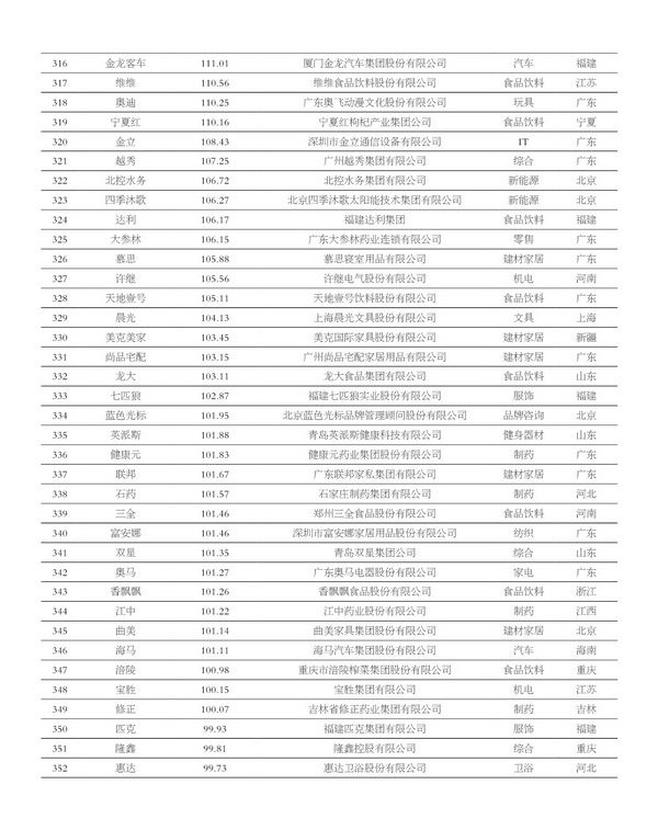 2016年5月12日,中國品牌價值500強評審委員會揭曉第十屆中國品牌價值500強榜單。500個上榜中國品牌的總價值高達130536億元,平均每個上榜品牌的價值為261億元。2015年,平均每個上榜品牌的價值為233億元。2014年,平均每個上榜品牌的價值為222億元。這表明,在過去一年里企業品牌價值的增長幅度超過12%,比上一屆5%的增幅有較明顯的提升。