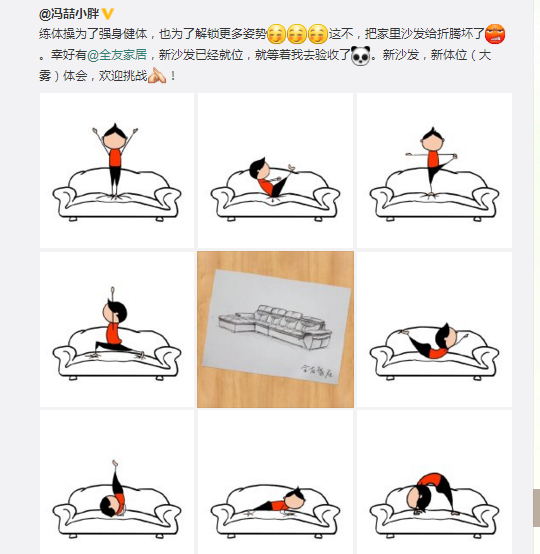 里約奧運(yùn)會(huì)在遙遠(yuǎn)的南半球激情上演,當(dāng)我們隨著奧運(yùn)健兒經(jīng)受比賽的跌宕起伏之時(shí),微博界也因“一條微博”備受關(guān)注。8月16日,微博段子手世界冠軍馮喆(微博名:馮喆小胖)發(fā)了一條微博: “練體操為了強(qiáng)身健體,也為了解鎖更多姿勢,這不,把家里沙發(fā)給折騰壞了。幸好有@全友家居,新沙發(fā)已經(jīng)就位,就等著我去驗(yàn)收了。新沙發(fā),新體位(大霧)體會(huì),歡迎挑戰(zhàn)”微博一經(jīng)發(fā)出,引起了大量網(wǎng)友關(guān)注與討論:“世界冠軍與沙發(fā)有何火花,竟然沙發(fā)都能被折騰壞?”“全友家居?好熟悉,是以熊貓為吉祥物的川派家具企業(yè)嗎?”“新沙發(fā),新體位,我有點(diǎn)好奇了”……在冠軍馮喆發(fā)布微博的幾個(gè)小時(shí)后,全友家居官方微博對(duì)馮喆小胖的微博進(jìn)行了轉(zhuǎn)發(fā),并發(fā)布內(nèi)容稱: “#有獎(jiǎng)提問# 轉(zhuǎn)發(fā)此條微博+“想問馮喆的問題”被選中即可獲得由馮喆親筆簽名的禮物,期待你們的腦洞哦~ #世界冠軍來了#”一時(shí)間,獲得廣泛關(guān)注。作為“吃瓜”群眾之一,記者帶著深深的疑問,對(duì)此次冠軍馮喆與全友家居的互動(dòng)進(jìn)行了“真相”揭秘。