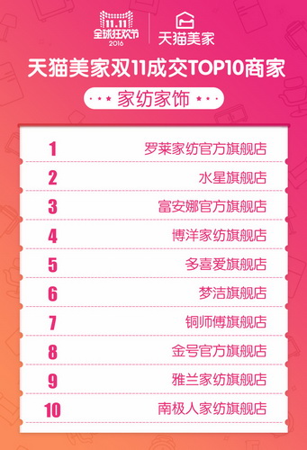 來自泰國的nittaya連續2年在雙11天貓進口家紡家飾行業登頂,爆款乳膠枕熱銷5萬個。harborhouse、muji、zarahome、esprithome等國際家紡知名品牌業績也非常搶眼。
