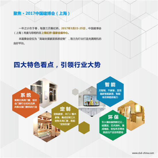 全:中國建博會是一個“全產業鏈的大塊頭展會”,致力“為建筑裝飾行業提供整體解決方案”,這也是中國建博會區別于其他同類展會的特色和優勢。