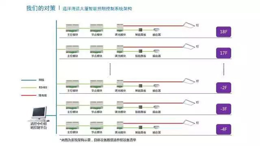 值得注意的是,遠洋大廈建筑工程為一棟 18層的辦公樓,其智能化照明系統的布置范圍包括18層的辦公室、會議室、公共走廊以及地下車庫等。