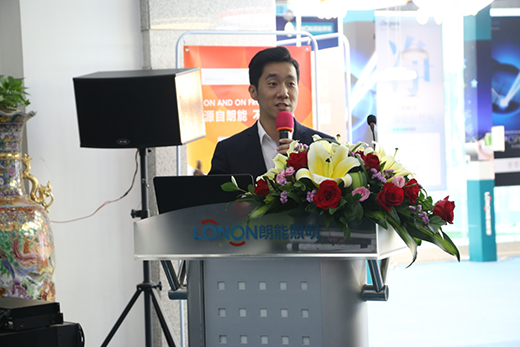 選擇在朗能電器總部召開會議,不僅讓經銷商看到了朗能集團強勁的綜合實力,也讓本次的新產品亮相環節更具實感!可看得見的產品,可想象到的未來,讓在場嘉賓喜上眉梢。在熱烈的掌聲伴奏下,朗能公司總經理鄧勁明先生上臺做歡迎致辭。鄧總先是對在場嘉賓的到來表示熱烈的歡迎與誠摯的感謝,大家能在百忙之中抽出時間相約至此、共襄盛宴,朗能總部不勝感激!鄧總也希望大家能在今天的會議中收獲滿滿,在今后的終端經銷中收益滿滿,能通過經營朗能產品實現自己的人生價值,為家庭、為社會做出杰出貢獻!