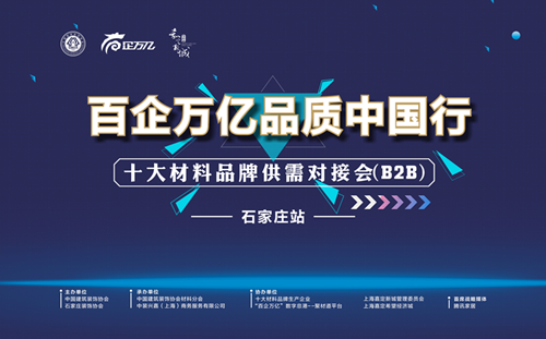 5月29日,百企萬億品質中國行——十大材料品牌供需對接會正式在全國啟動,首站在石家莊•太行國賓館舉辦。屆時,莫干山板材、美涂士漆、新中源陶瓷、老板電器、夢天木門、浦東電線、金牛管業、美標衛浴、酷家樂等品牌產品會通過實物展示和場景展示的方式,直接面對來自當地裝飾企業、房地產企業、傳統家裝企業、互聯網家裝企業、供應鏈企業的采購商近200人,開展業務對接與洽談簽約活動。