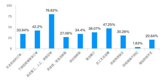 在疫情沖擊下,企業受到的主要影響有:延遲復工,人工、房租空轉;員工無法返回工作崗位;下游因疫情取消訂單;客流稀少;供應鏈斷裂;無法完成的訂單違約金;防疫物資缺乏等問題。反映了企業面臨著諸多現實困難,急需有關政府部門、行業組織政策支持。