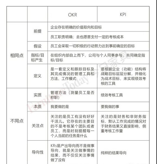 KPI是自上而下的目標拆分,OKR是上下共同的對目標和結果的理解與推進。