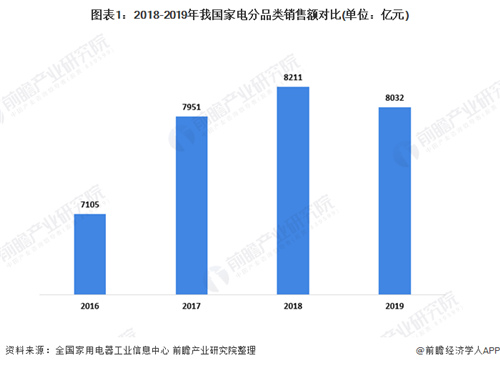 2019年受居民部門杠桿率的上升、食品價格上漲的壓力、持續走低的結婚率與出生率、民營和中小企業的融資困難等因素影響,拖累了家電市場規模的進一步壯大。2019年全年我國家電零售額為8032億元,同比下降2.2%。