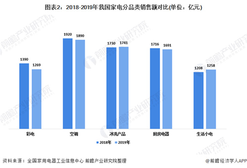 圖表2:2018-2019年我國家電分品類銷售額對比(單位:億元)