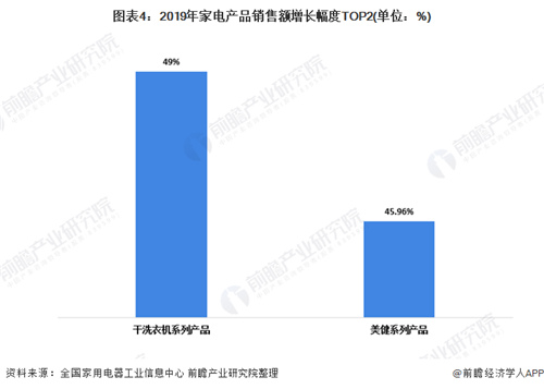 圖表4:2019年家電產品銷售額增長幅度TOP2(單位:%)
