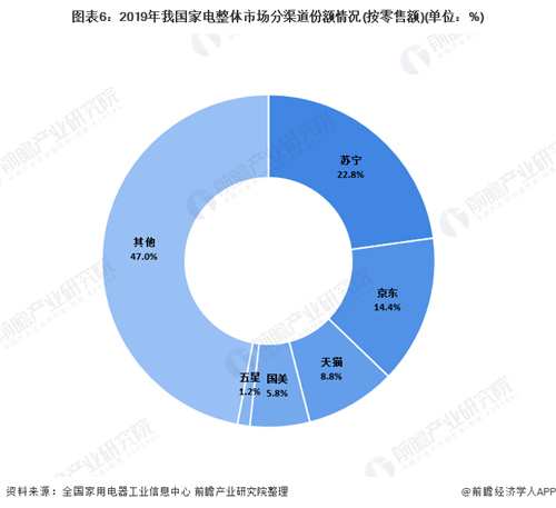 圖表6:2019年我國家電整體市場分渠道份額情況(按零售額)(單位:%)