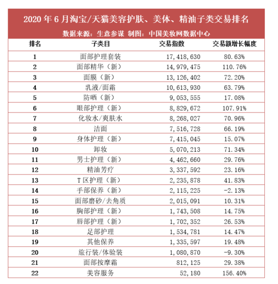 在被寄望于上半年“回血之戰”的6月,淘寶/天貓美容護膚、美體、精油類目的數據,國貨護膚品牌“節節敗退”,掉出高交易品牌TOP10,足以說明一些事實。不過認清事實的同時,我們也不能忽視一些潛力增長點。