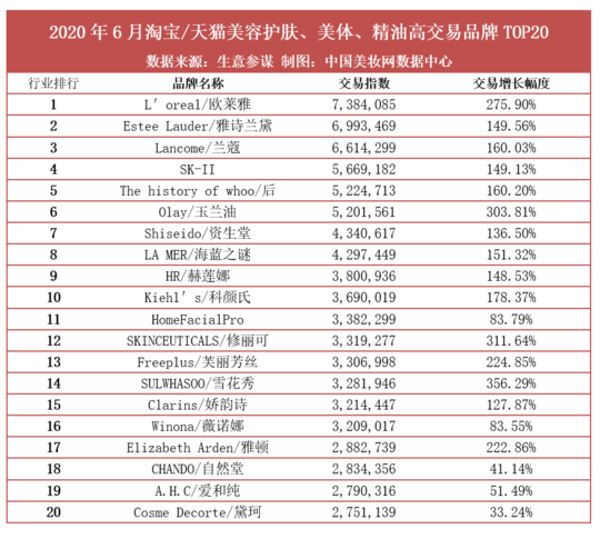 國貨護膚品牌跌出前十,高交易TOP20品牌國貨僅占15%