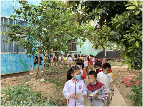孩子們在觀察植物時,會有不同的發現和感受。“這棵植物長得好奇怪?”“為什么是兩片葉子?”……他們拿著研學手冊,在植物園里一邊細細觀察,一邊提筆做記錄,不時和同學們分享自己的新收獲。