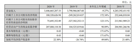 報告顯示:2020年公司實現(xiàn)營業(yè)收入344,666.53萬元,同比下降9.27%;歸屬于上市公司股東的凈利潤18,032.06萬元, 同比增長172.34%。歸屬于上市公司股東的扣除非經(jīng)常性損益的凈利潤7,569.54萬元,同比增長123.11%。截至2020年末,公司資產(chǎn)總額316,298.49萬元,較上年末增長9.28%。公司負債總額214,104.39萬元,同比增長4.54%。資產(chǎn)負債率67.69%,同比下降3.07個百分點。歸屬于母公司所有者權益89,759.33萬元,較去年末增長24.78%。