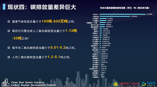 在房地產企業碳排放信息披露現狀方面,黃博士總結了4個特點:意愿不強、統計邊界不一致、外購能源排放系數不一致、排放量差異巨大。