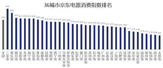 把各城市的指數一排列,研究者發現,指數最高的居然不是北上廣深等頂級大都市——實際上完全相反,北上廣深整體電器消費指數均偏低,而三亞、銀川、南寧、昆明、西寧、呼和浩特這些城市的電器消費指數都位居前列。