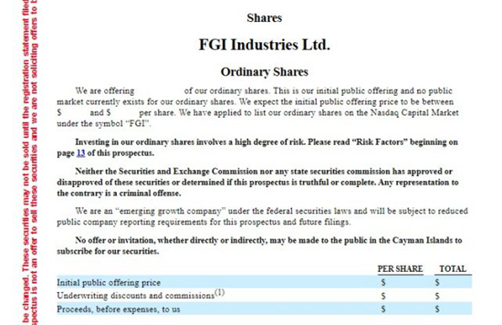 美國當地時間9月10日,富凱集團(ForemostGroups Ltd,美國家居企業排名第56位)旗下廚房和衛浴產品供應商FGI Industries (以下簡稱“FGI”)向美國證券交易委員會提交了IPO申請,預計將于9月下旬于納斯達克上市。首次募集資金為1800 萬美元,用于潛在的并購或其他戰略資本分配優先事項以及營運資金和一般企業用途。