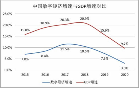 圖表:中國數字經濟增速與GDP增速對比