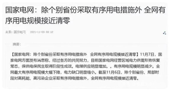 近日,國家電網發文宣布:除個別省份采取有序用電措施外,全網有序用電規模接近清零,全國電力供需緊張形勢已經有所緩解,未再出現拉閘限電現象。這意味著,九月底以來的全國性限電情況,已基本宣告結束!同時商務部數據也顯示家居建材原料價格出現回落,企業成本將得到穩步控制!