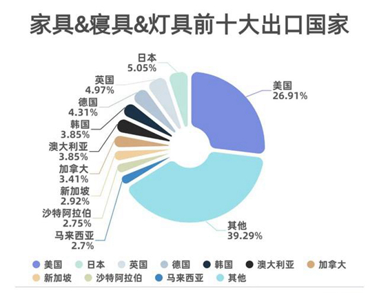據海關統計,2021年1至11月,中國家具及其零件出口額為4316.4億元,同比增長21.7%。其中,中國對東盟、歐盟和美國等主要貿易伙伴進出口均增長。尤其是東盟,為中國第一大貿易伙伴,中國與東盟貿易總值5.11萬億元,增長20.6%,占中國外貿總值的14.4%。東盟已經成為我國家具出口的重要地區。