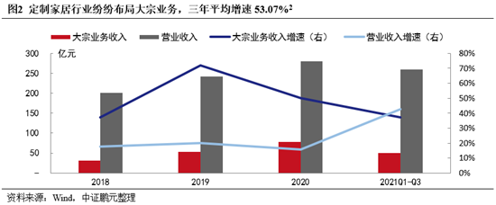 本次房企風險暴露過程中,大宗業務盈利低、回款慢的弊端逐漸顯現。中證鵬元認為,大宗業務是定制家居行業渠道變革方向的一次嘗試,未來或將回歸謹慎發展,展望未來,定制家居行業在渠道和品類變革方面的探索仍將繼續。