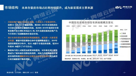隨著中產(chǎn)階級(jí)群體不斷增加,越來(lái)越多消費(fèi)者個(gè)性化、定制化需求的增加,定制家居行業(yè)仍具有較高發(fā)展?jié)摿?,如今迅速膨帳的存量房市?chǎng)帶來(lái)的翻新需求以及精裝房滲透率的提高則為家居行業(yè)貢獻(xiàn)源源不斷的增量。