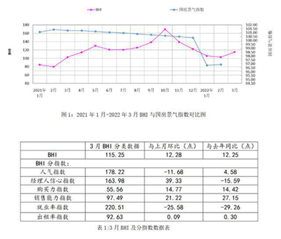 全國建材家居景氣指數BHI,3月份為115.25,環比上漲12.28點,同比上漲12.25點。全國規模以上建材家居賣場3月銷售額為1073.83億元,環比上漲27.82%,同比上漲38.60%;一季度累計銷售額為2907.56億元,同比上漲46.80%。