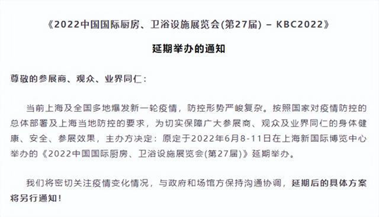 主辦方表示,因當前上海及全國多地爆發新一輪疫情,防控形勢嚴峻復雜。按照國家對疫情防控的總體部署及上海當地防控的要求,為切實保障廣大參展商、觀眾及業界同仁的身體健康、安全、參展效果,最終做出延期舉辦的決定。