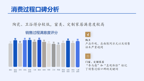 不同于其它商品的消費體驗,由于涉及采購、設計、施工、物流、安裝等諸多環節,家居消費周期長且流程復雜,因此消費者在選購家居、家裝產品時,品牌、口碑、消費體驗等都將成為影響消費決策的關鍵因素。