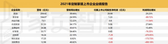不僅如此,從凈利潤來看,14家上市裝企中就有7家虧損。以華凱創意為例,其2021年營收增速高達1435.08%,但利潤仍為負數。這說明較高的營收增速也未能給企業帶來高利潤。