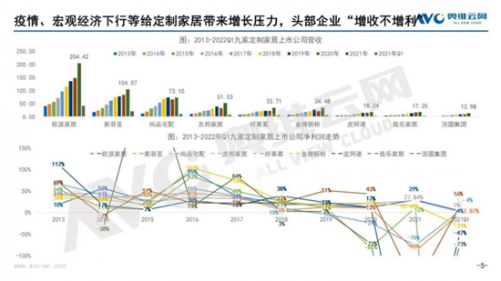 回顧近幾年定制家居行業(yè)上市企業(yè)業(yè)績(jī),多數(shù)企業(yè)處于增收不增利的狀態(tài),尤其是2021年,各家上市企業(yè)營收均保持較高增速,而多數(shù)企業(yè)毛利率、凈利潤等指標(biāo)都處于下滑的趨勢(shì)。