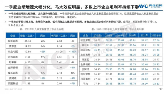 再從今年一季度數(shù)據(jù)來看,九家定制家居上市企業(yè)業(yè)績(jī)?cè)鏊俅蠓只堫^優(yōu)勢(shì)持續(xù)凸顯,歐派家居以26%的增速領(lǐng)跑,個(gè)別企業(yè)增速為負(fù)。
