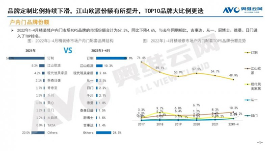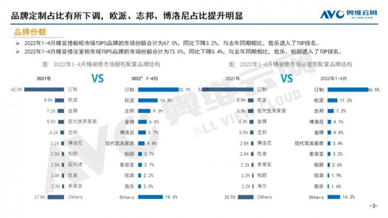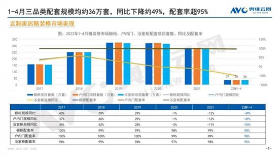除了消費(fèi)端,從精裝修市場(chǎng)來看,定制家居產(chǎn)品在1-4月份整體配套規(guī)模下降在五成左右,配置率始終保持較高水平。