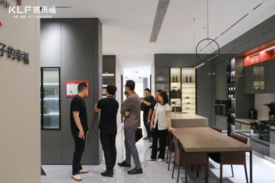帶領(lǐng)建博會(huì)(廣州)團(tuán)隊(duì)首先來(lái)到客來(lái)福12代展廳,陳總等人在近距離感受客來(lái)福產(chǎn)品后,對(duì)其整體呈現(xiàn)效果表示肯定。客來(lái)福不同系列裝修風(fēng)格,都細(xì)致把控品質(zhì)、設(shè)計(jì)、色彩等,只為給受眾滿意的與時(shí)俱進(jìn)的特色產(chǎn)品。