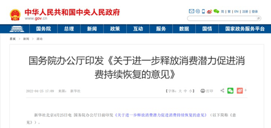 4月,國務院辦公廳印發《關于進一步釋放消費潛力促進消費持續恢復的意見》,其中提到要促進消費有序恢復發展;全面創新提質,著力穩住消費基本盤;完善支撐體系,不斷增強消費發展綜合能力等重要意見。