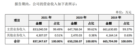 業績層面上看,報告期內箭牌家居的盈利能力碾壓多數同行業上市公司。2019年-2021年度,箭牌家居營業收入約為66.58億元、65.02億元及83.73億元;歸屬于箭牌家居股東的凈利潤約為5.56億元、5.89億元及5.77億元。