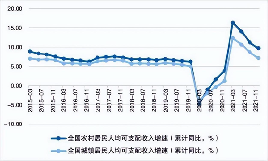 國家統計局數據顯示,2021年,我國城鄉居民收入差距不斷縮小,農村居民人均可支配收入達到18931元,同比增長10.5個百分點,增速快于城鎮居民人均可支配收入增速的8.2%。同時,農村居民人均消費支出達到15916元,同比增長16.1個百分點,增速也快于城鎮居民人均消費支出增速的12.2%。