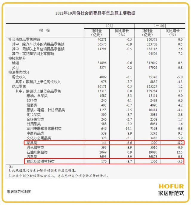 疫情之下,社會消費疲軟是各行各業均在共同面對的難題,但在各類消費品中,唯獨家具類零售總額多次排在倒數位置,以10月社會消費品零售總額為例,建筑及裝潢材料在各類消費消費品中位列倒數第三。